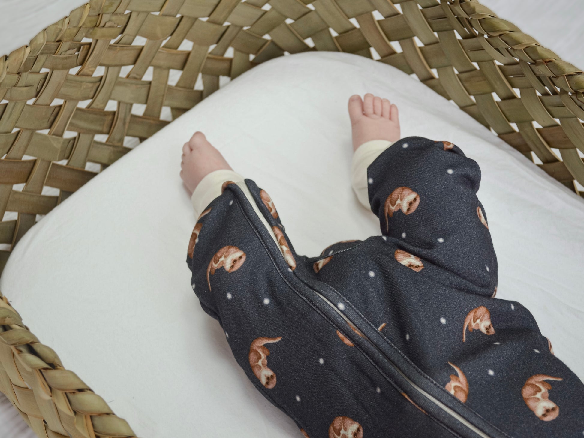 Zip Romper made from a buttery soft blend of bamboo and organic cotton. Natural fibres are breathable and gentle on your baby's skin. Double ended zip. Flip-over feet cuffs for extended wear. Fold-over hand mittens only up to size 12-18M
